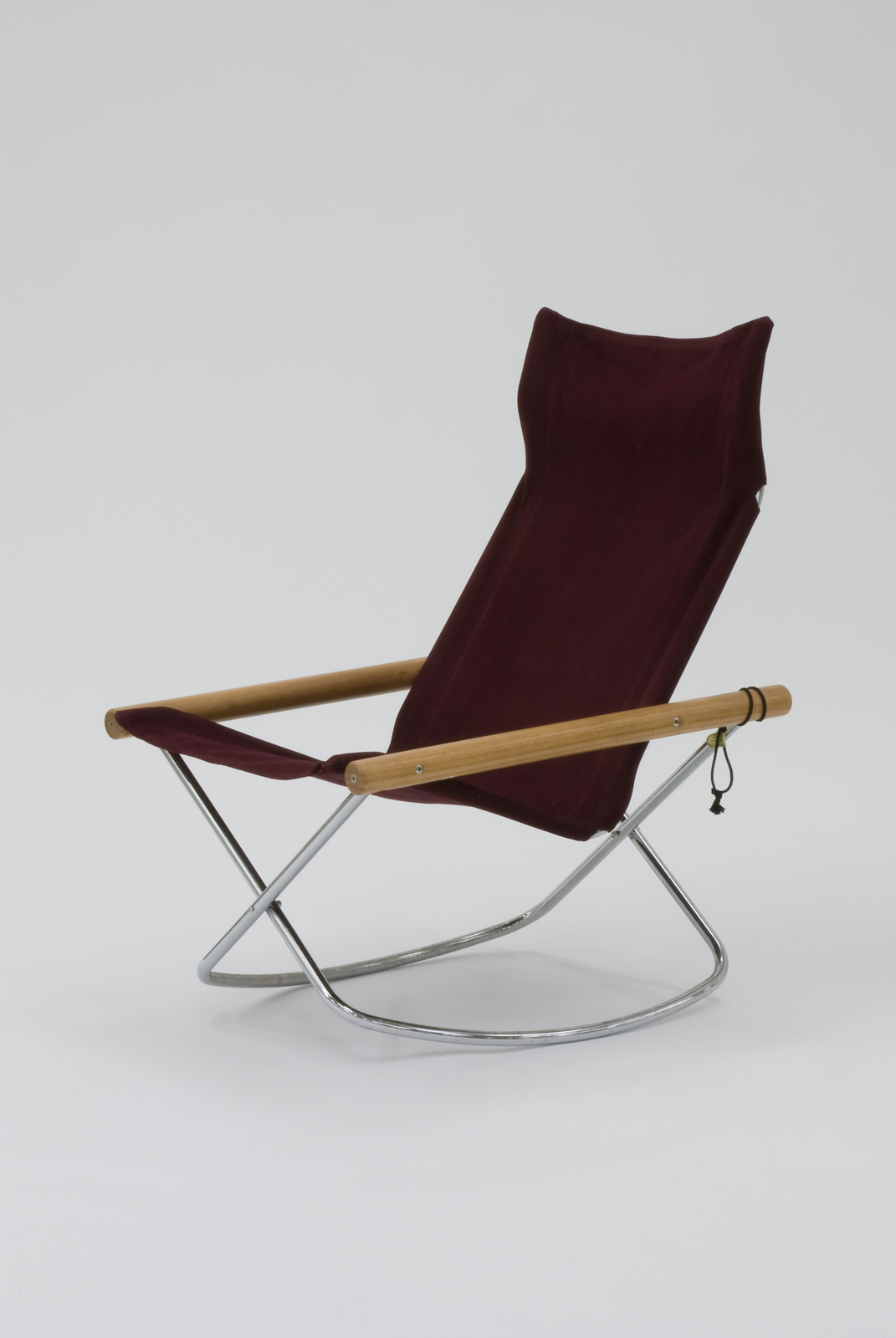 1970年に発表されたニーチェアXのバリエーションとして1972年に作られた椅子である。とりたててロッキングのためにソリ部分を新たに取り付けることはせず、U字型金属パイプでできているニーチェアXの床に接する直線部分を少し緩やかに反らしている点はすばらしい処理である。ロッキングで折り畳めるというのも世界で極めてまれな独自性といえよう。