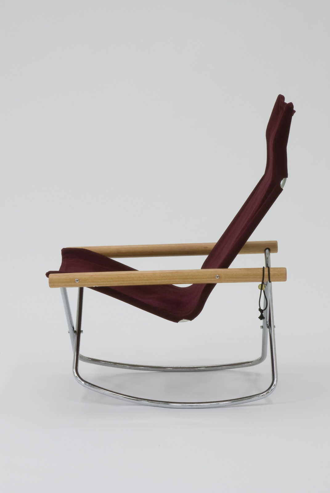 1970年に発表されたニーチェアXのバリエーションとして1972年に作られた椅子である。とりたててロッキングのためにソリ部分を新たに取り付けることはせず、U字型金属パイプでできているニーチェアXの床に接する直線部分を少し緩やかに反らしている点はすばらしい処理である。ロッキングで折り畳めるというのも世界で極めてまれな独自性といえよう。 |