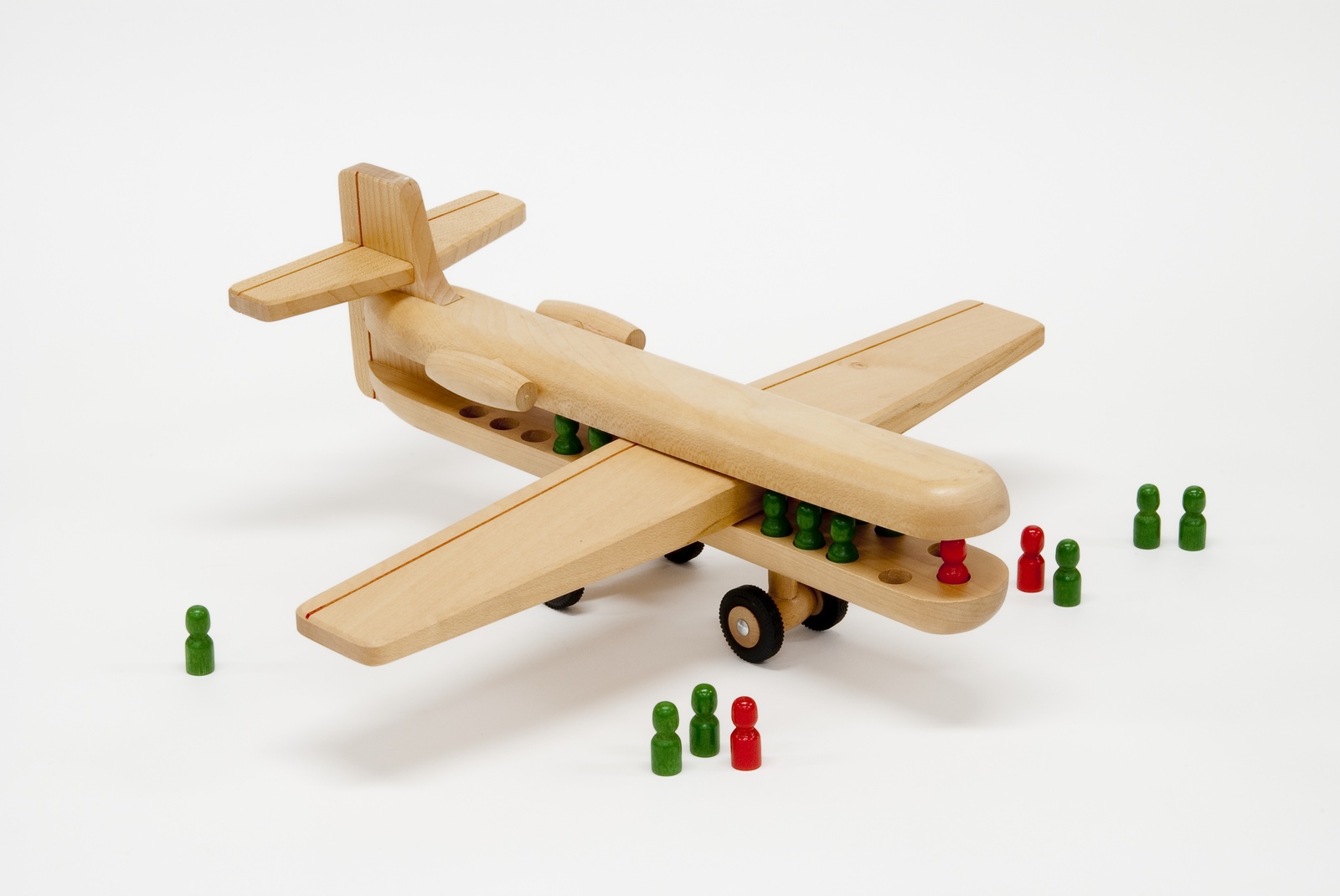 飛行機の上部はふたのように開閉ができ、中の人形を降ろしたり乗せたりできる。 |