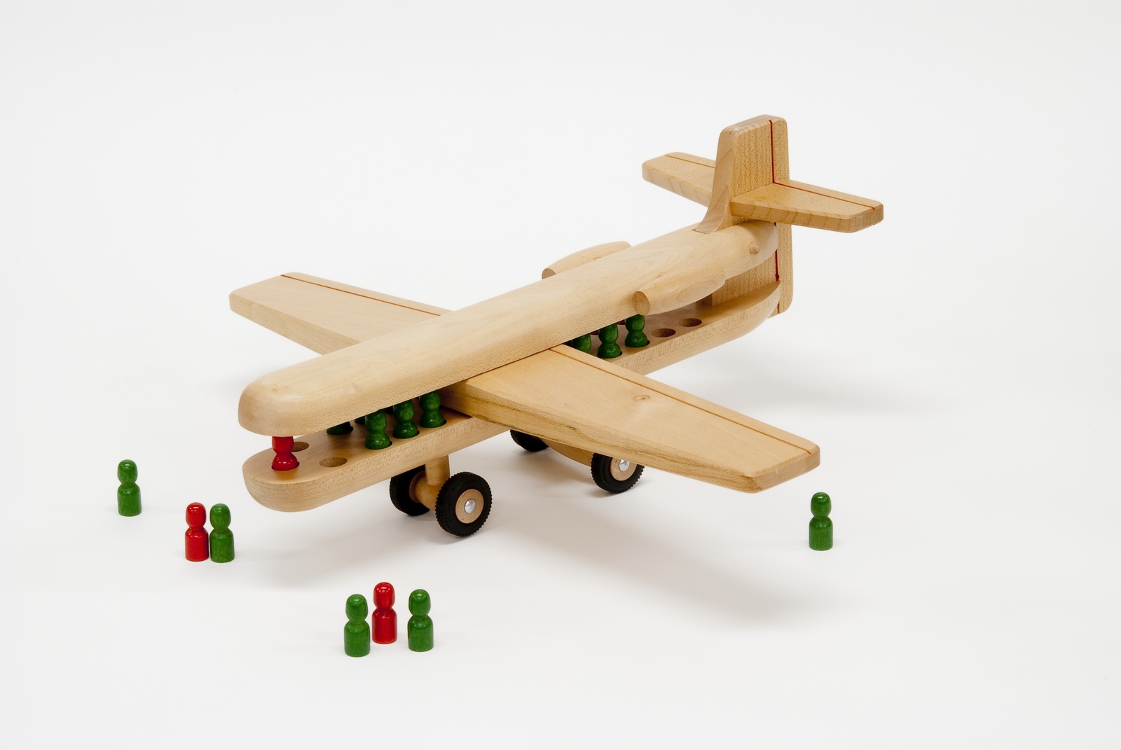 飛行機の上部はふたのように開閉ができ、中の人形を降ろしたり乗せたりできる。 |