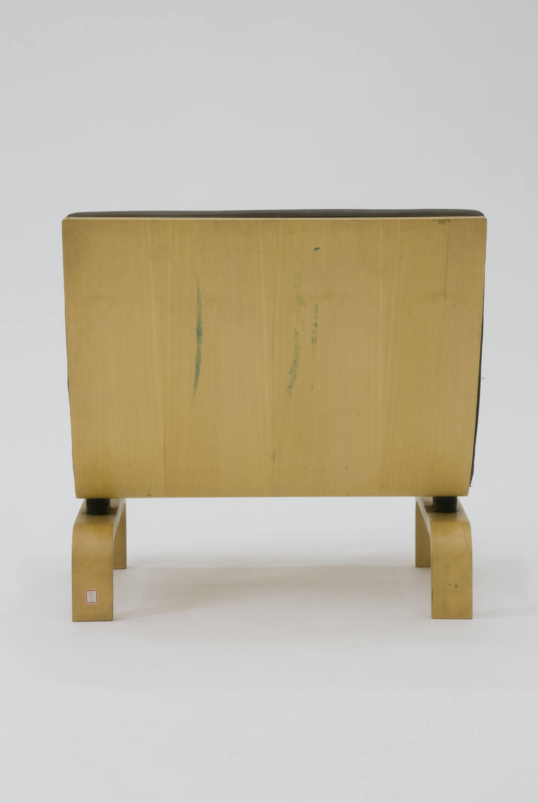 金属と木材、または金属と革という人工素材と良質の天然素材との対比で美しい家具を生み出してきたポール・ケアホルムが、成形合板と革とを組み合わせた家具づくりに着手したデザイン。大振りの休息用の椅子でありながら背と座を1枚の成形合板でつくり、古典的な技法であるボタンじめのクッションをのせている。脚は逆U字型にして座と背の間に1本の貫を入れ、きわめて細い間で座と脚をつけている。このジョイントの部分に彼が終生尊敬していたミース・ファン・デル・ローエやチャールズ・イームズの影を見ることができる。 |