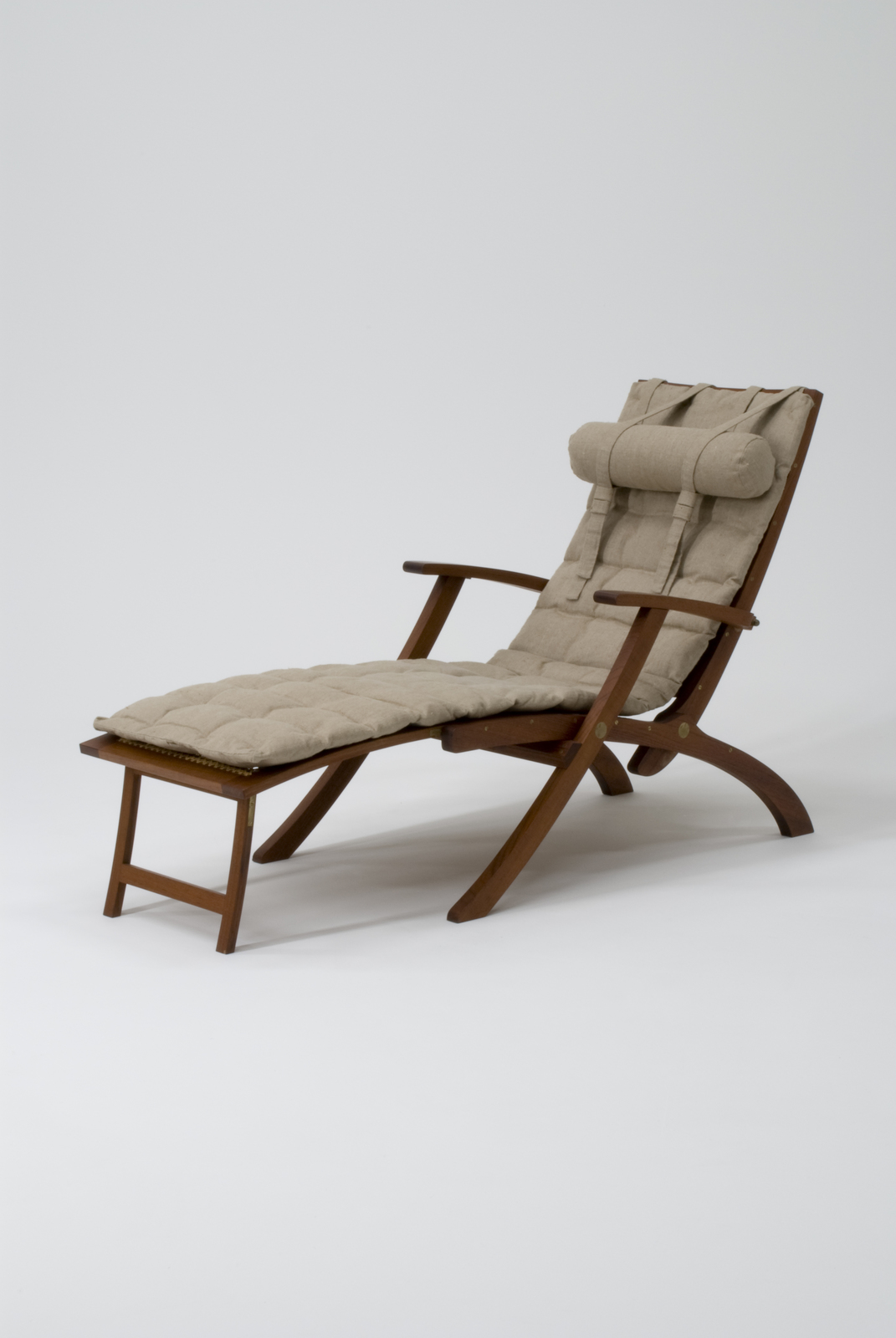 客船のデッキで使用される古くからある折りたたみの安楽椅子を、コーレ・クリントが今日的な技術と感覚で美しくリデザインした椅子。折りたたみの機構は椅子の前後から折りたたむようになっている。また座面の裏に足のせが収納されており、使用するときに引き出すようになっている。樹脂分の多いチーク材は古くから船舶用材として、床、建具にも使われる強い木材であり、また家具用材としても質感、色彩と加工性に富んでいる。チーク材のダークブラウンの色調に真鍮の色が調和し、高級感を生んでいる。