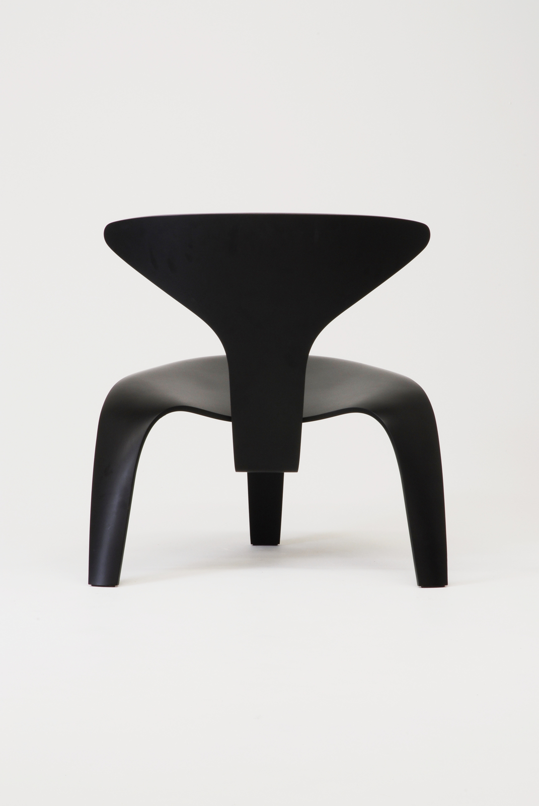この椅子は2片の3次曲線の成形合板でできている。前脚から背につながる部材と、座面から後脚につながる2つの部材からなり、その2つの部材は座面の下で接合されている。2つの部材の接合部分にはケアホルムが私淑したイームズによる「DCW」と同じゴムとボルトナットのデティールを活用している。この椅子はポール・ケアホルムがフリッツ・ハンセン社のデザイン部門のスタッフであったときにデザインしたもので、当時の技術では強度に問題があり生産できなかったが、1997年にフリッツ・ハンセン社の創立125年を記念して限定ナンバー付きで生産された。当時としては大変ユニークなフォルムをしており、また現在でも決して古さを感じさせないデザインである。 |