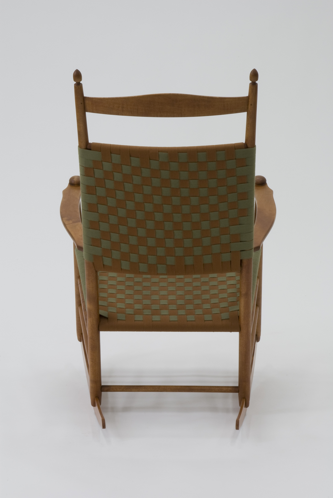 結婚制度を認めていなかったシェーカー教において高齢者は長老として敬われており、自ずからその介護を目的とする家具の需要があった。この椅子は、既存のシェーカーチェアの脚部をロッキングに作り替えたものであるので、ロッキングチェアでありながらも全体的に軽やかなつくりになっている。アームの先端にある半球状の突起物はマッシュルームと呼ばれており、アームの先に手を置いたときに掌が収まりよくなるように作られたものである。またハイバックのロッキングチェアであり、背に渡されている板はヘッドレストであると同時に、構造上「貫」の役割も果たしている。