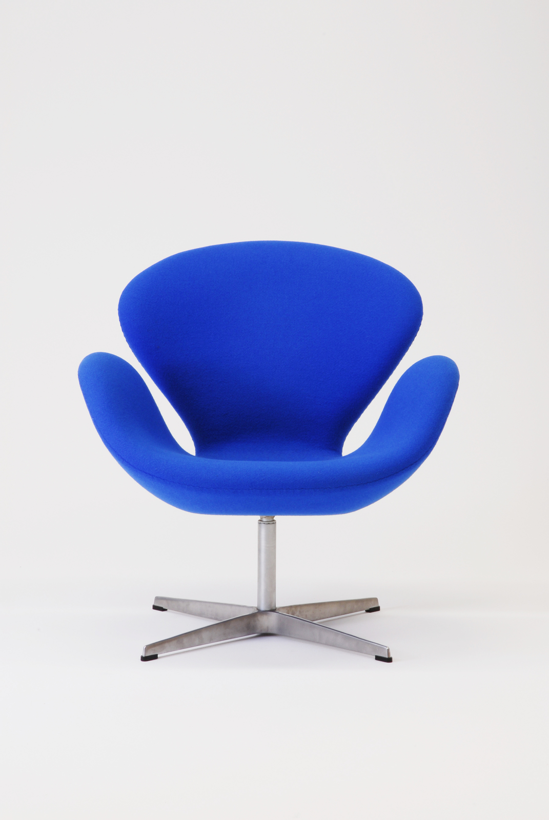 コペンハーゲンのSASロイヤルホテルの設計者、アルネ・ヤコブセンは、その内部の詳細に至るまでデザインをした。この椅子は世界初の硬質発砲ウレタンを使用した家具であり、ホテルのロビー用としてデザインされたエッグチェアに対し、この椅子はロビーと客室用としてデザインされたものである。その形態は軽やかで親しみやすく、特にデンマークでは多くの人から愛されている白鳥(スワン)の名で呼ばれている。 |