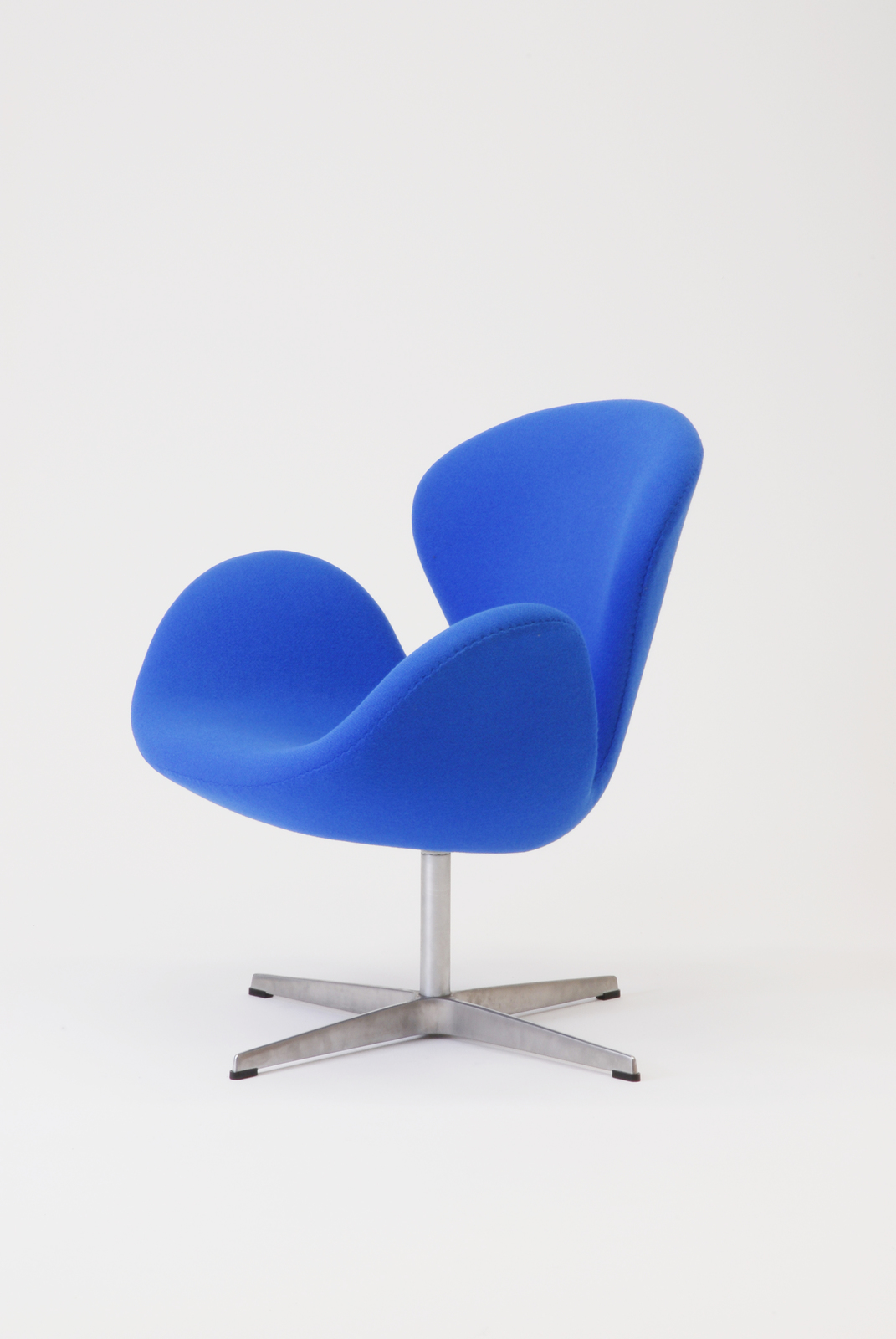 コペンハーゲンのSASロイヤルホテルの設計者、アルネ・ヤコブセンは、その内部の詳細に至るまでデザインをした。この椅子は世界初の硬質発砲ウレタンを使用した家具であり、ホテルのロビー用としてデザインされたエッグチェアに対し、この椅子はロビーと客室用としてデザインされたものである。その形態は軽やかで親しみやすく、特にデンマークでは多くの人から愛されている白鳥(スワン)の名で呼ばれている。 |