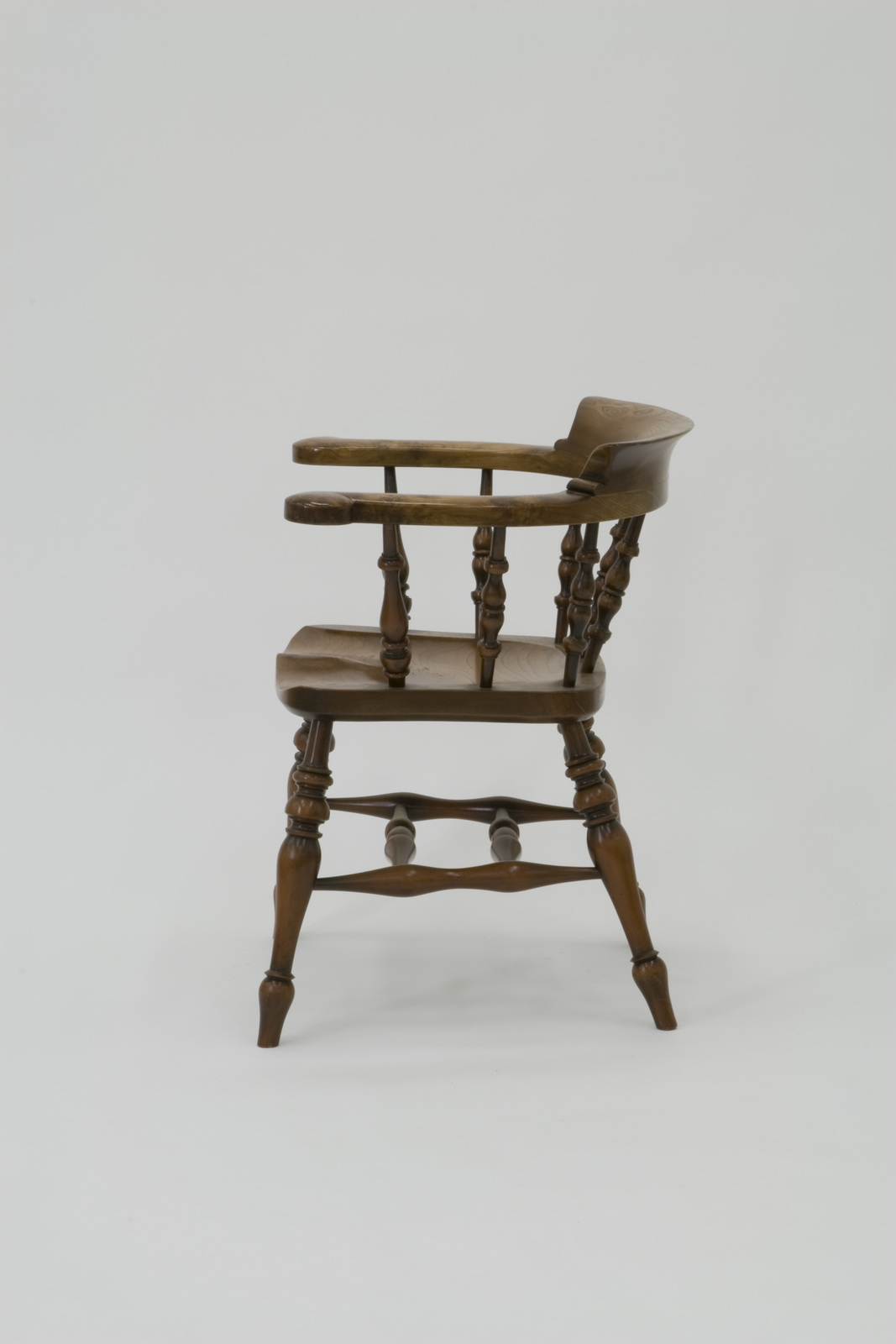 19世紀後半産業革命を迎えたロンドンでは、労働人口が急増し市民の憩いの場としてパブが誕生する。パブには立ちながら飲むスタンドと、腰掛けながら飲むスペースがあり、この椅子は後者のスペースで人々がたばこの煙をくゆらしながら、ビールを飲み談笑するために使われたことからこの名が付けられた。パブの大流行あわせて、この椅子も大量に消費されたという。アームとつながっている背は低く全体的に骨太で、正面からのシルエットはいかにも安心感を与える造形である。