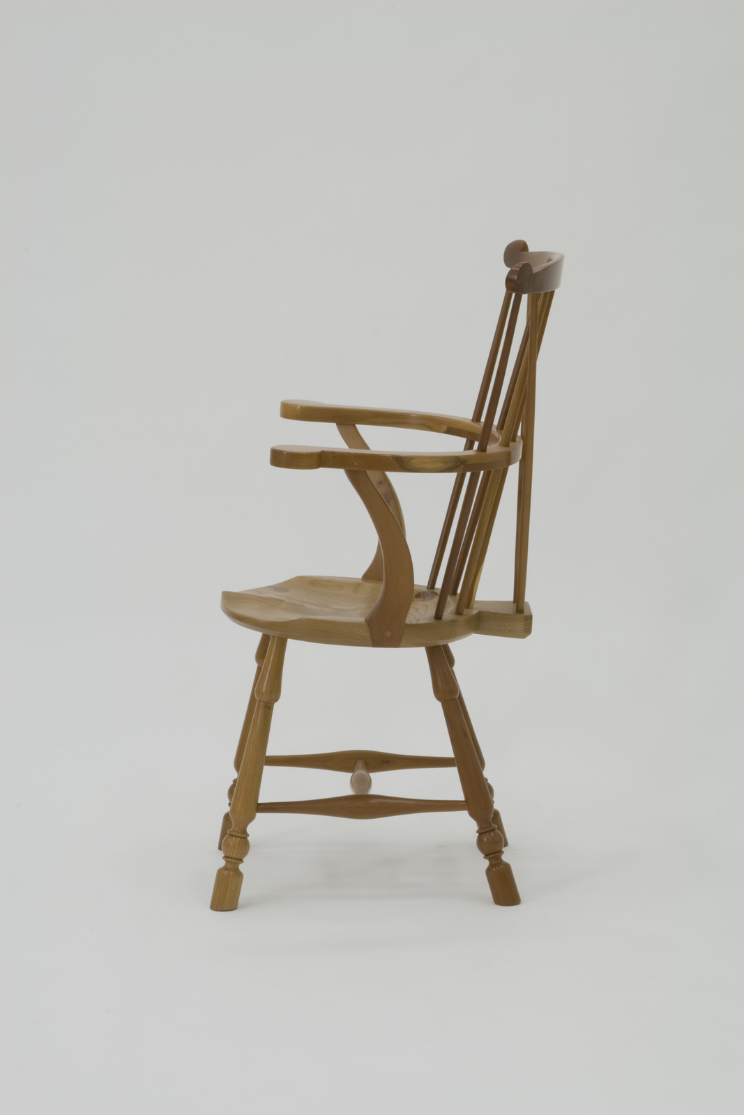 ウィンザーチェアがテムズ川沿岸のハイウィンカムを中心に大量に作られ、ロンドンという大きな市場で大衆化していったのは18世紀後半であるが、この椅子はそれよりも少し早くから存在したモデルである。たしかに座は円形でウィンザーにしては華奢な印象をあたえるが、ある研究者によれば、この椅子にはウィンザーチェアに長年に渡って継承されてきた要素が数多く含まれている。ちなみに、この名の由来はデザイナーでも製造者でもなく、たまたまこの椅子を所有していた著名人の名前が残った珍しいケースである。 |