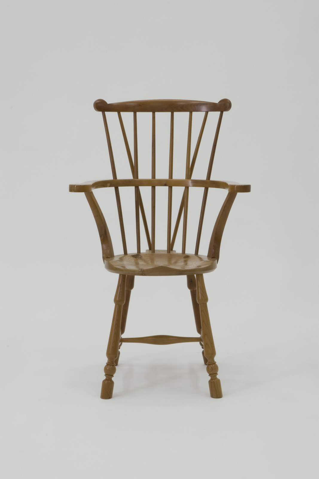 ウィンザーチェアがテムズ川沿岸のハイウィンカムを中心に大量に作られ、ロンドンという大きな市場で大衆化していったのは18世紀後半であるが、この椅子はそれよりも少し早くから存在したモデルである。たしかに座は円形でウィンザーにしては華奢な印象をあたえるが、ある研究者によれば、この椅子にはウィンザーチェアに長年に渡って継承されてきた要素が数多く含まれている。ちなみに、この名の由来はデザイナーでも製造者でもなく、たまたまこの椅子を所有していた著名人の名前が残った珍しいケースである。 |