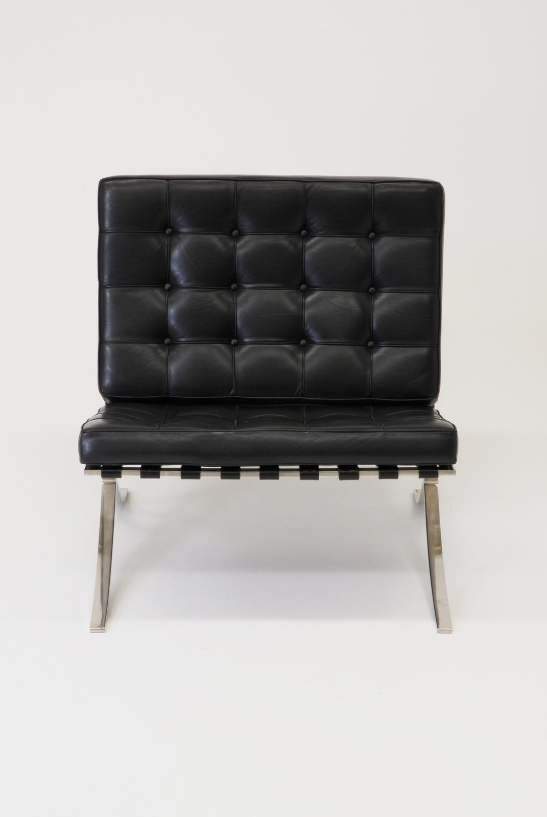 1929年のバルセロナ万国博覧会で、ミースが設計したドイツ館に来館するスペイン国王がくつろげるように、そしてその空間とも合った高級感あふれる椅子を目指してデザインされた。構造としては非常にシンプルであり、X型に組み合わされた金属のフラットバーの上に浮くようにして革でキルティングした座と背のクッションがのっている。一見単純に見えるが、金属の溶接や仕上げ方法、クッションを支えるためにバーに革ベルトをまわしてその上にクッションをのせるというような仕組などは大変な手間とコストがかかっている。しかしその存在感は素晴しく、横から見た背のカーブが円弧状になっているところなど造形性の面でも優れている。だが当初の目的であるスペイン国王はドイツ館を訪問しなかったといわれている。