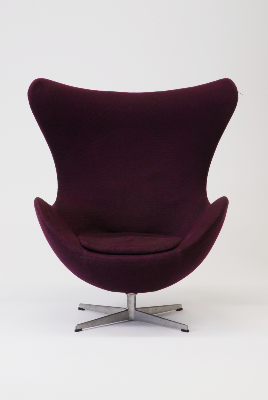 後方から見たシルエットから、エッグ(卵)の名がつけられた。ホテルのロビー用につくられた椅子であり、1つのテーブルを囲んで、他の人たちとは隔離された空間をつくるために考えられた形である。つまりハイバックにし、体を囲むことがコンセプトである。ロビーだけでなく他の空間でも使用され、量産できるように硬質発砲樹脂が使われている。この椅子はゆったりしており、背に寄り掛かるとリクライニングするが、4本脚でも十分安定している。この椅子は新しい素材と、新しい製法でつくられているため発売当初は奇抜な存在だった。