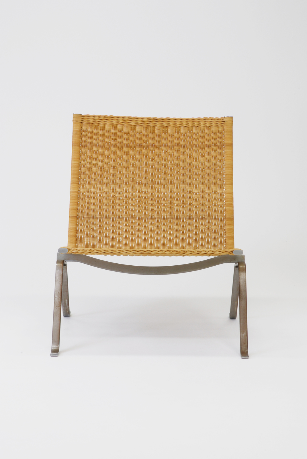 ミース・ファンデル・ローエの持っている格調、気品を尊敬していたケアホルムは、良質な人工の素材と自然の素材との調和で豊かなものをつくろうと考えた。この椅子は籐で一体となった背および座の部分と、金属でできた脚の部分との対比で出来ている。しかもデンマークの木製家具の中にある質素でありながら構造が明解でありディティールが美しいという3つの伝統はしっかり引き継いでいる。この椅子のプロデューサーであるコール・クリスティエンセンは通常、鉄では出来ないこの構造に苦労した末、生産を実現したのである。一つデザイナーと技術を持つ者との信頼関係でできたすばらしい事例によって生れた椅子である。