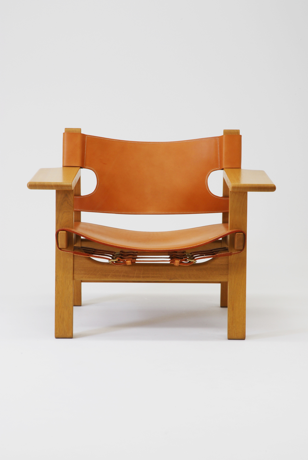 モーエンセンが「F.D.B」からフリーになったあとにつくった椅子である。背と座がそれぞれ厚い一枚革でつくられたスペインの椅子をリデザインしたものである。リデザインをするときに大切なことがらは2つあり、1つは今日の技術を用いつつ品質を落とさないこと。2つ目は今日の生活にあわせて機能的に使いやすくすることである。モーエンセンは2つのことを忘れずにリデザインしている人物であるといえるだろう。アームは小テーブルとして使うことができ、また革は伸びてもベルトで調節できるようになっている。