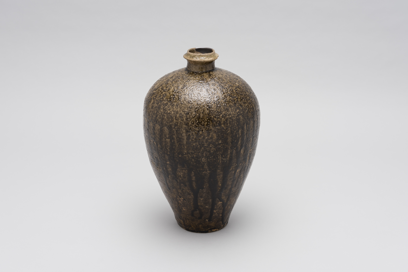 飴釉菊花魚文瓶
