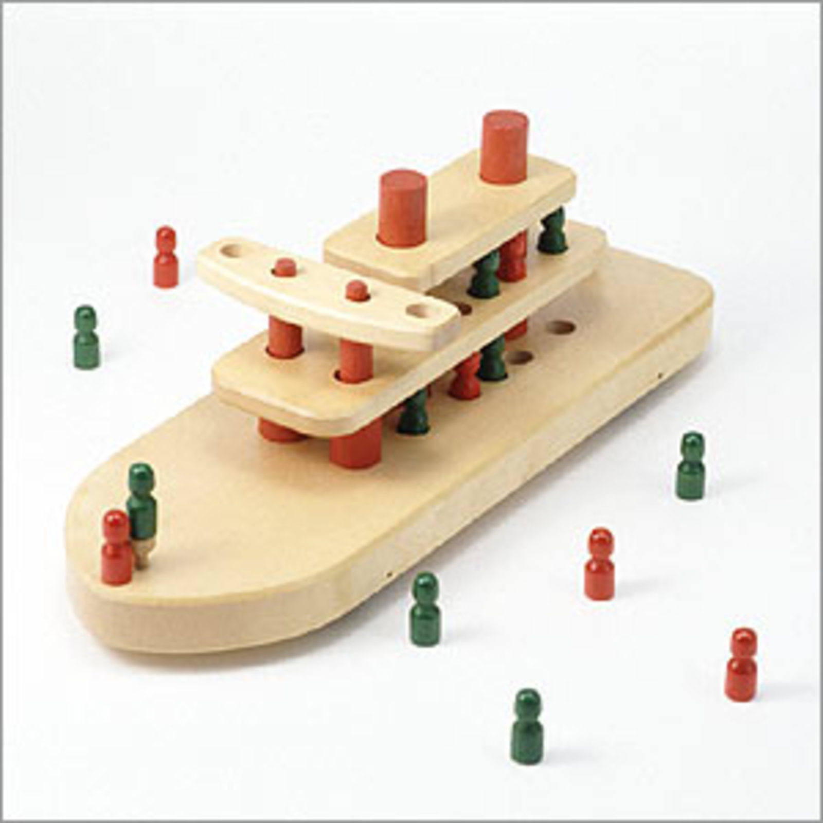 人形を乗せたり降ろしたりできる3階建ての船。車輪がついているので押して遊ぶこともできる。 |